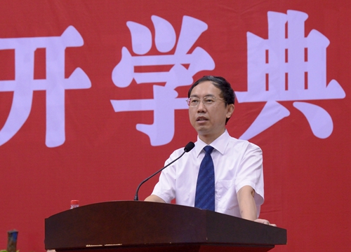 在介绍了学校的历史沿革和未来愿景之后,叶飞帆校长向在座新生抛出了一个令人深思的问题:读大学是要干什么?对此,叶校长表示,学校将致力于学术性、复合型、实践性的应用型人才培养。为了更好地培养应用型人才,学校今年最新修订完成了2014版人才培养方案,借助模块化的课程体系架构,在专业方向分流方面,给同学们提供更多的选择机会;同时设置了大量的辅修专业模块和选修模块,更加有利于同学们学习跨学科知识;同时,方案还加强了学时管理,努力帮助同学们提高学习效率,让大家把有限的时间和精力用在专业学习的刀口上,让每个同学在文理学院都有出彩的机会。叶飞帆校长满怀深情地说:“自从你们步入校门的那一天起,你们就和母校血脉相连了。希望你们继承和发扬母校修德求真的优秀品格,和母校共同成长,共享荣光。”
