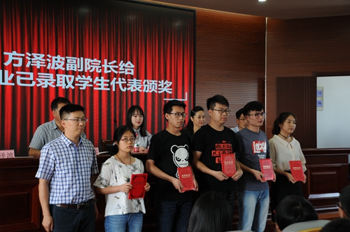 数理信息学院相关负责人宣读表彰决定,并向考研录取学生代表、优秀考研负责人、优秀指导教师进行颁奖。杭州科百特过滤器材有限公司经理姚慧婷为第三届“科百特成长奖学金”获奖者颁奖,电信142班朱斌达获一等奖,微电子141班徐珊瑚、电信141班汪洪晴、电信141班毕一宁获二等奖,数学142班孙暄、电信141班夏颖、微电子141班蒋磊、数学142班张静、物理141班周丹、物理141班陈忠兰获三等奖。