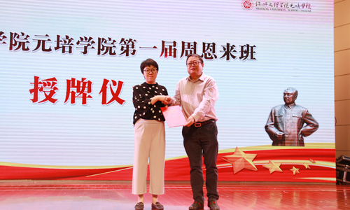 周秉建等为学院第一届“周恩来班”获奖班级授牌