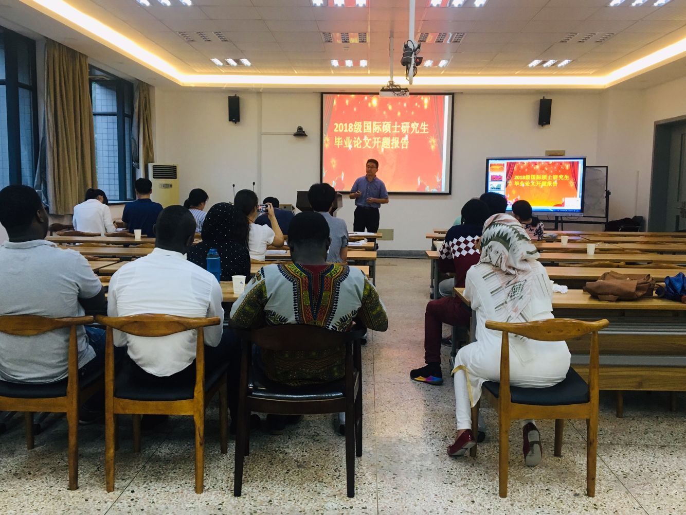 经过导师的悉心指导和同学们的精心准备,来自不同国家的国际留学生穿着自己的民族服装,进行了精彩的开题汇报。开题报告中,2018级研究生围绕选题背景、选题意义、论文主要内容、研究框架、主要创新点、主要研究方法、进程安排等方面进行了详细汇报,与会专家对同学们的开题报告进行了认真评审,逐一点评,对存在的问题提出了宝贵的修改意见和建议。会场学术气氛浓厚,讨论热烈。