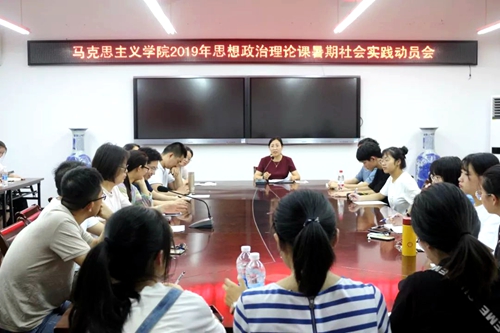 6月28日下午,马克思主义学院2019年思想政治理论课暑期社会实践动员会在402会议室召开。会议由院党总支副书记袁海平主持,全体带队教师、团委学生会骨干及思政181班全体同学60余人出席。