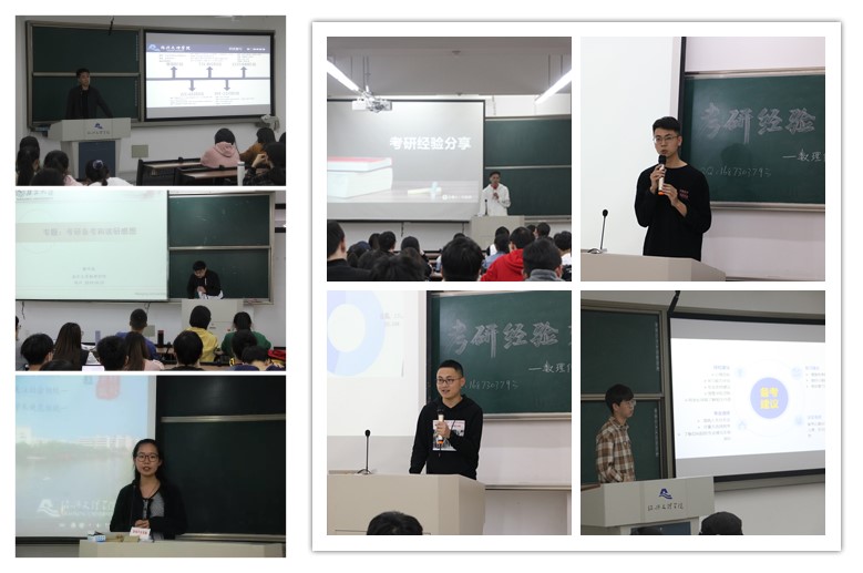 校友传帮带,讲授考研路上的实战经验。数理信息学院每月邀请优秀考研校友回校,通过举办考研专题讲座和经验交流会,帮助更多的学生解答考研困惑。每位学长学姐倾囊相授,讲授报考院校及专业的备考经验、复试经验,根据学弟学妹需求,建立考研群提供备考复习经验及资料;分享个人联系方式,对于自身所知做到有求必答。考取厦门大学的原电信161班严梓峻同学说:“学院培育了我们,也成就了我们。学院在我们考研学子身上注入了大量的精力、物力和财力,现在学院邀请我们回校做经验分享,作为数理学子,定当义不容辞,我们要将这种奉献的精神传承下去。”数理信息学院近三年已成功邀请30多位优秀考研校友回校做考研经验分享,帮助了一批又一批学弟学妹圆了考研梦。