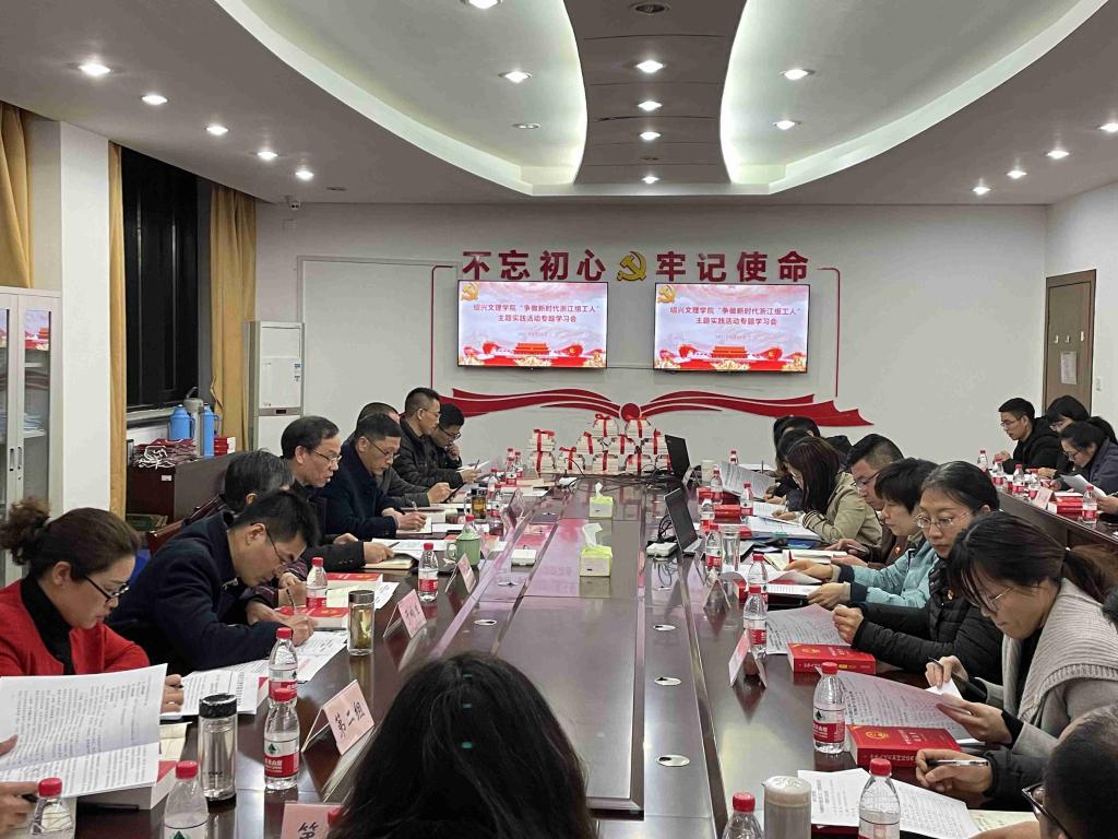 宣绍龙作中心发言,他指出全面过硬的组工干部队伍是学校事业发展的坚强保障,大家要提高政治站位,充分认识主题实践活动的重要意义。根据省委组织部文件精神,学校坚持问题导向、效果导向,突出组工特色,突出文理标识,精心策划了“争做新时代浙江组工人”主题实践活动。本次活动以“提高‘政治三力’,练就‘三种本领’”为主题,计划通过开展学习研讨、素质提升、警示教育、问题整改等实践活动,引导组工干部锻造过硬的政治素质、业务能力和责任作风,争做新时代浙江组工人。宣绍龙对组工干部提出了三点要求:一是要提高政治判断力,做有坚定信念的浙江组工人,二是要提高政治领悟力,做有高强本领的浙江组工人,三是要提高政治执行力,做有过硬能力的浙江组工人。