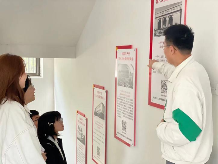 “党史楼道”通过19块展板图文并茂展示了中国共产党从“一大”到党的十九大的辉煌历程。从理工楼一楼至四楼,顺着历史足迹,楼道墙面上清晰呈现生动的党史展览,全景描绘了我党从艰难探索到开拓创新的奋斗历程。师生还可以通过手机扫描展板上的二维码了解历次党代会的详细信息。