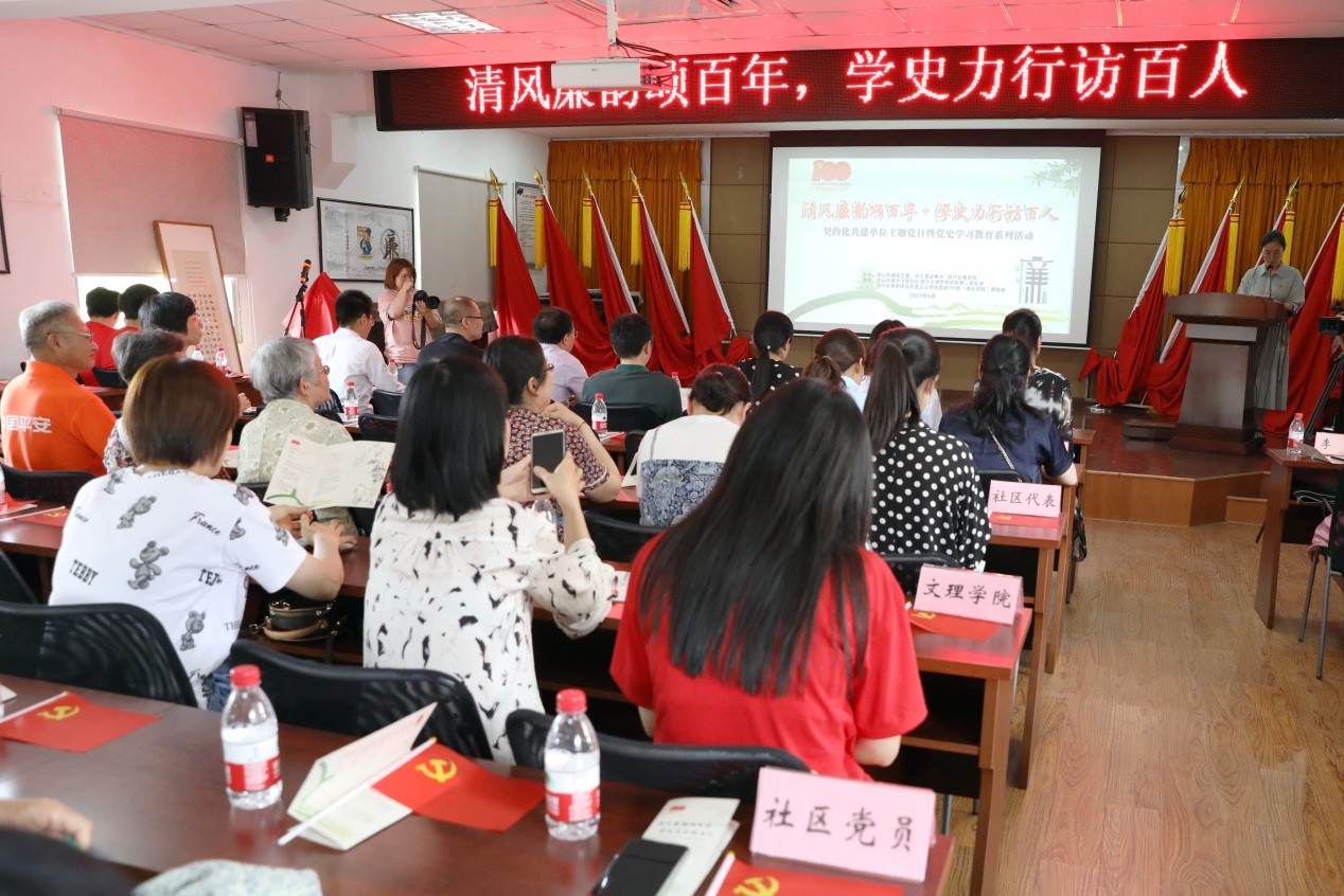 塔山街道党员干部何斐、水沟营社区党员干部祝颖莹、校机关二支部教师党员丁熠燚、马克思主义学院思政191班的同学们先后诵读了王冕、陆游、白居易、王阳明、于谦等历代名人的清廉主题诗词。