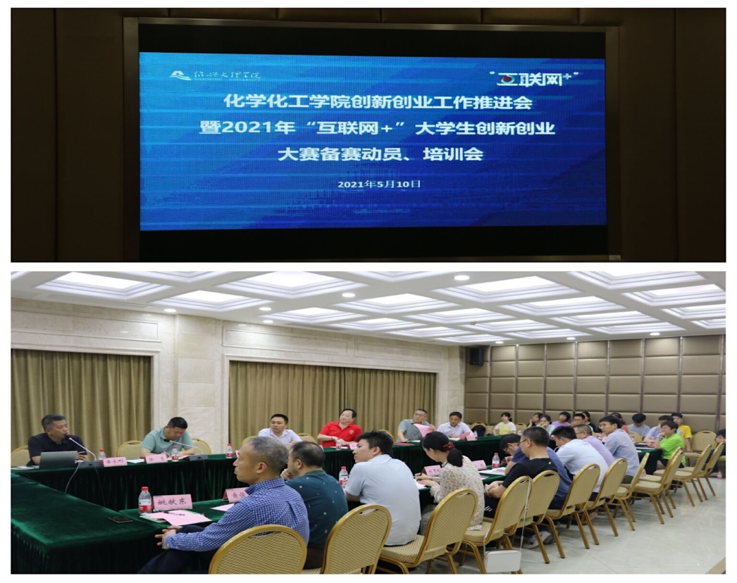 5月10日下午,化学化工学院于铁城科教馆一楼会议室召开了创新创业工作推进会暨2021年“互联网+”大学生创新创业大赛备赛动员、培训会。校团委负责人、学院党政班子成员、各系(专业)主任、培育(备赛)项目指导老师及各项目学生团队成员参加了会议。会议由学院党委副书记徐青主持。