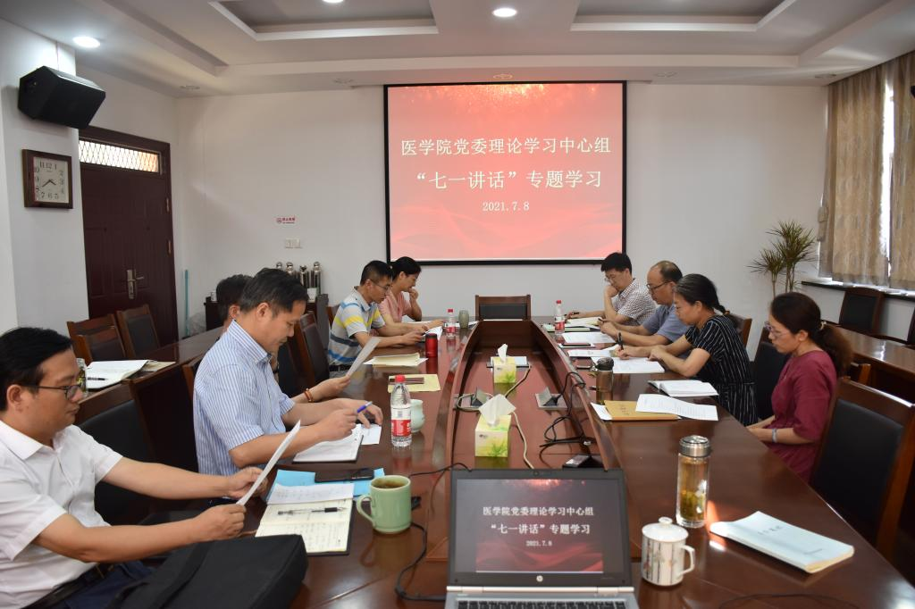 7月8日,医学院党委理论学习中心组开展习近平总书记“七一”重要讲话精神专题学习,学院中层领导干部、党委委员及中心组成员参加。