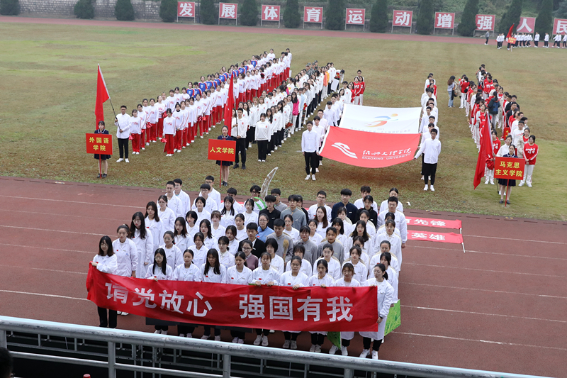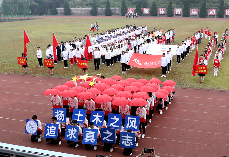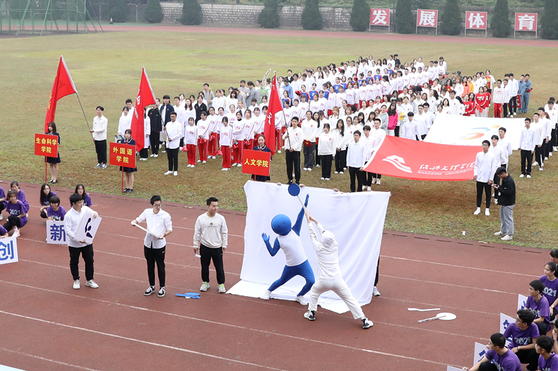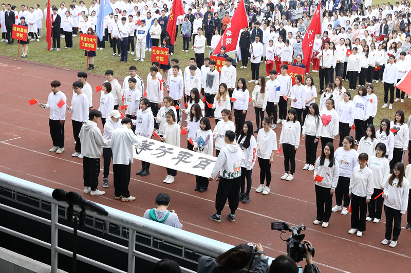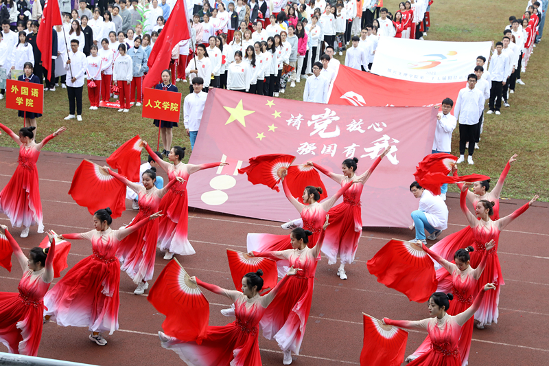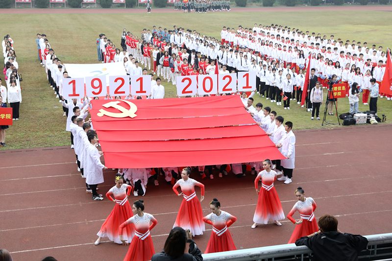 为庆祝中国共产党成立100周年,落实全民健身和健康中国国家战略,倡导师生文明健康生活方式,展示我校学子体育风采。10月28日-29日,我校举行第二十七届田径运动会,各二级学院积极参与、精心编排,在开幕式中展现了我校学子“请党放心 强国有我”的责任担当和精神风貌,为建党百年献上青年学子的运动风采。