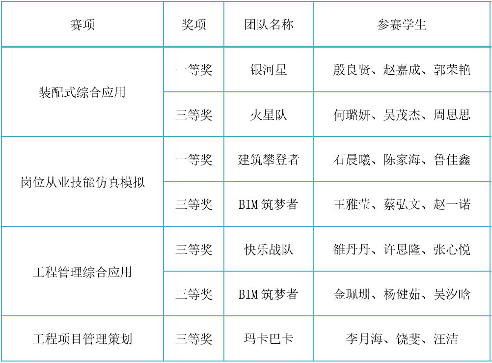11月6日,2021年数字建筑创新应用大赛总决赛在线上举行。来自中南大学、新疆大学、青岛理工大学、宁波大学等291家院校的1352支团队进行同台竞技。在教务处精心组织和土木工程学院BIM团队李娜、高越青、李翠红、俞燕飞、姜屏、王伟等六位老师的认真指导下,我校8支队伍分别参加了4个竞赛项目,经过预选赛和总决赛两个环节,我校参赛队伍获总决赛一等奖2项、三等奖5项。