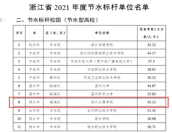 近日,浙江省水利厅等七部门公布了2021年度“浙江省节水标杆单位”名单,我校荣获浙江省级节水标杆校园。