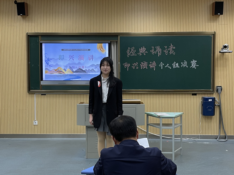 3月13日上午,个人组决赛在南山校区7号楼报告厅举行。由于疫情原因,此次决赛取消了为时10分钟的“回答问题”的闭卷考试,直接开始进行即兴演讲、古代作品朗诵、近现当代作品朗诵三个展示环节的竞赛,但选手们的表现依旧出色。