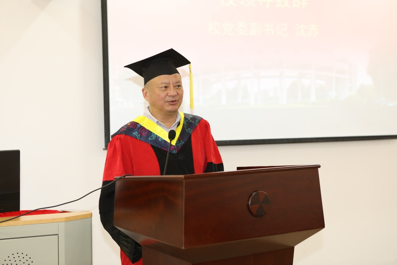 沈赤对14位生物学首届国内外研究生顺利毕业表示热烈祝贺,并勉励毕业生踔厉奋发,笃行不怠,胸怀家国天下。希望大家做有志之人,坚定理想信念,勇攀科学高峰;做有恒之人,持续学习,持续成长,用研究的态度砥砺前行,用科学的精神求真奋进;做有心之人,不忘母校、心怀感恩,在新的人生征程中持续为祖国、为母校贡献力量,努力成为堪当民族复兴大任的时代新人。