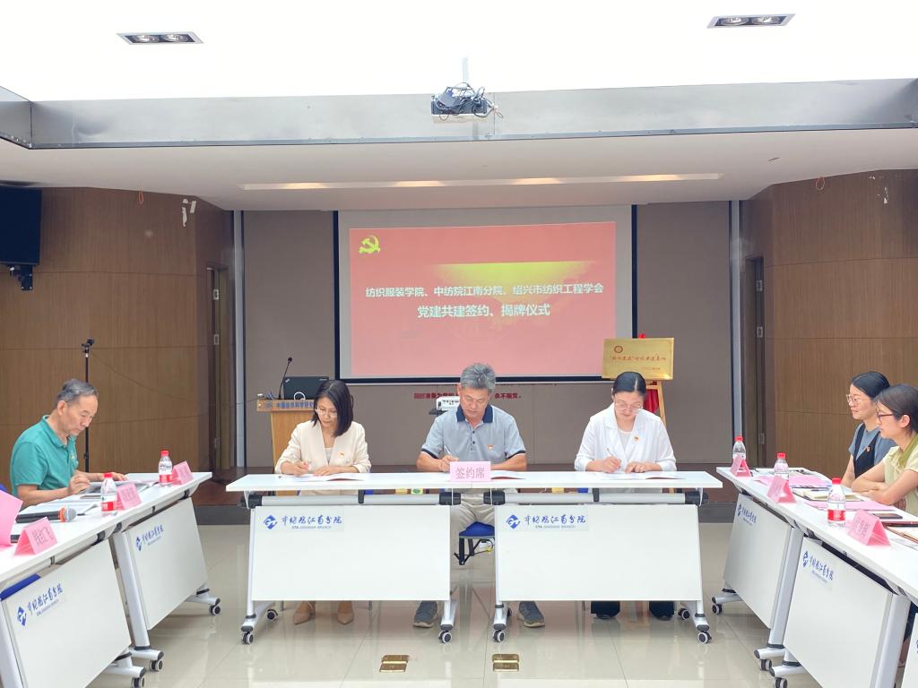 为深入贯彻落实“红色根脉强基工程”,进一步推进高校党建“四个融合”行动,6月28日下午,我校纺织服装学院、中国纺织科学研究院江南分院与绍兴市纺织工程学会党建共建合作暨“红色书架”设立仪式在中纺院江南分院三楼党员活动室举行。