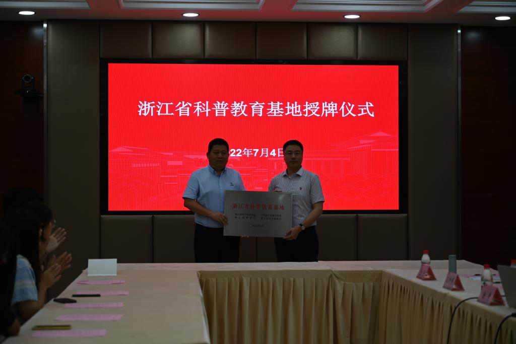 劳越嘉和徐青共同为浙江省科普教育基地授牌。