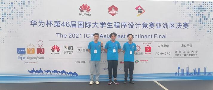 2022年7月19日-20日,第46届国际大学生程序设计竞赛亚洲区决赛由西北工业大学承办,来自北京大学、清华大学、浙江大学等160所高校的363支队伍参赛。我校参赛队“破晓”由网络工程201班的郑柏成、计算机科学与技术201班的孟嘉政、数据科学与大数据技术211班的范康鑫等三人组成(指导老师:黄龙军)。经过5个小时的顽强拼搏,我校“破晓”队最终在363支正式队伍中排名150位,喜获铜奖。