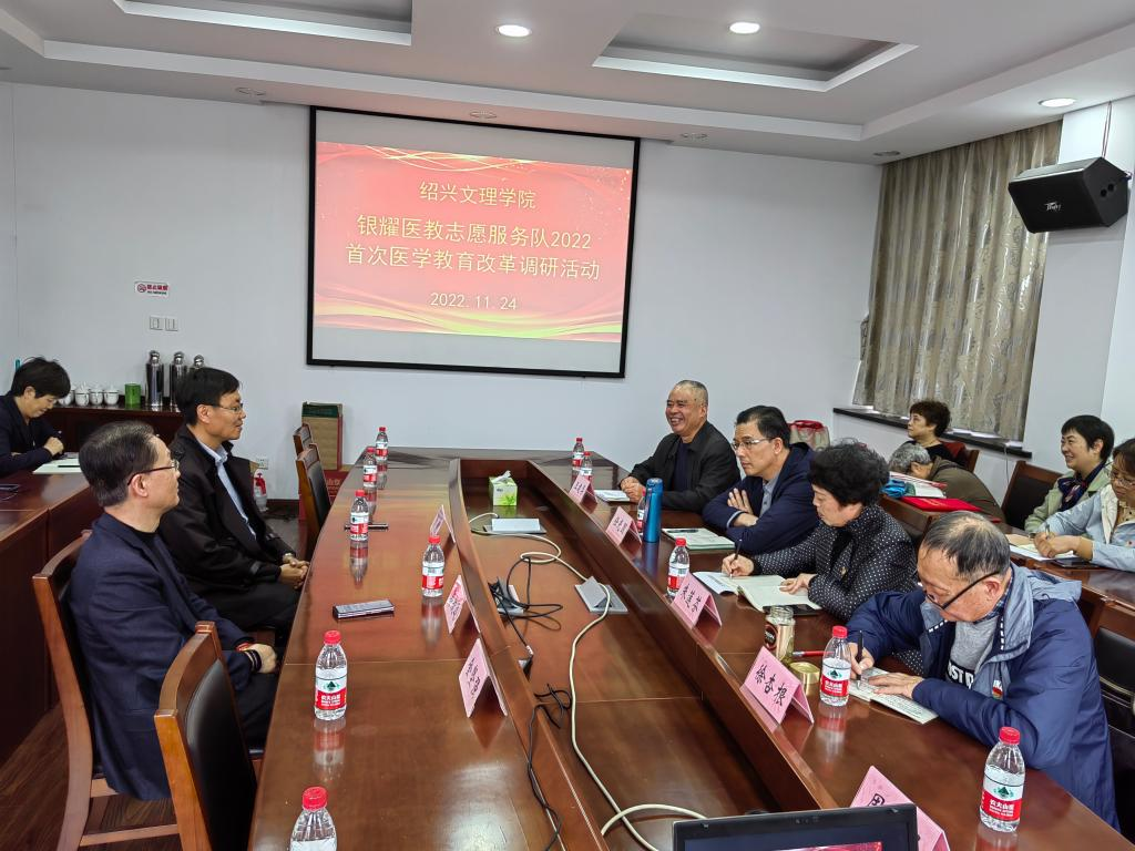 颁奖仪式结束后,“银耀医教志愿服务队”组织开展首次医学教育改革调研活动。医学院副院长张剑介绍了医学院教育教学成果,发展改革情况。