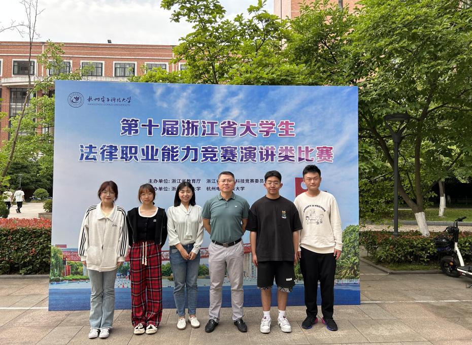 5月13-14日,由浙江省教育厅、浙江省大学生科技竞赛委员会主办的浙江省第十届大学生法律职业能力竞赛法律演讲类比赛在杭州电子科技大学顺利举行。由商学院法律系陈超老师、董新辉老师带队,陈关圣、蒋天培、王威媚、王佳苗四名法学专业学生参赛的代表队参加了本届比赛。参赛选手分别围绕“民有所呼,法有所应”“法律与科技双擎时代”“做一名德法兼备的法律人”三个赛题展开演讲。经过一天的激烈角逐,陈关圣、蒋天培两位同学获得二等奖,王威媚、王佳苗两位同学获得三等奖。另外,我校还荣获本届比赛的优秀组织奖。