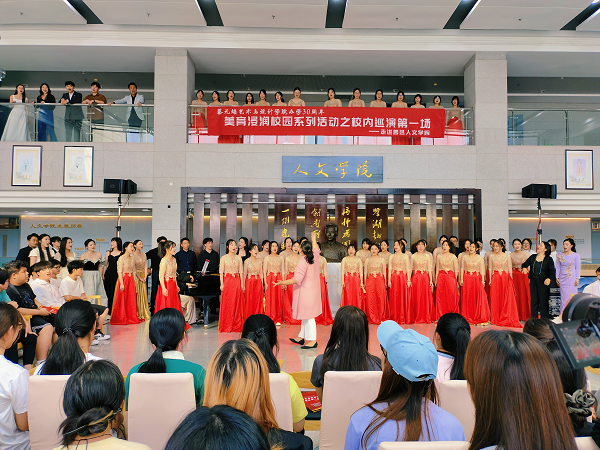为活跃校园文化氛围,深化校园美育教育,促进不同学院之间的文化交流与融合,5月15日下午,蔡元培艺术与设计学院办学三十周年系列活动“美育浸润校园巡演第一场——走进南山”在鲁迅人文学院顺利举办,本次活动由蔡元培艺术与设计学院和鲁迅人文学院联合主办。副校长赵浪平,宣传部、蔡元培艺术与设计学院、鲁迅人文学院主要负责人参加活动,活动吸引了100余位师生到场欣赏。
