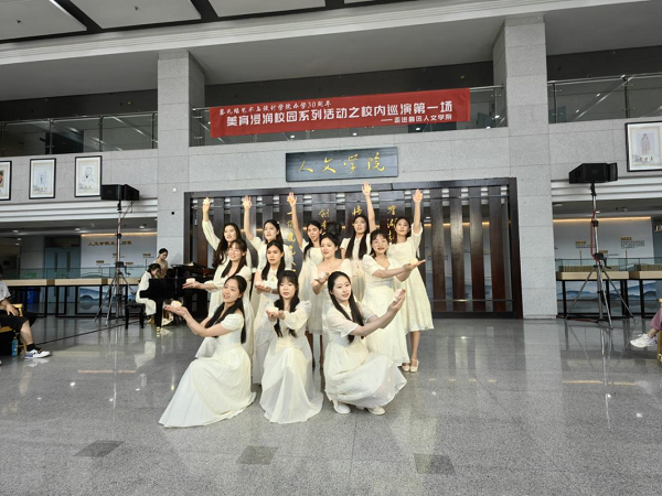 为增强活动的互动性、体验感,活动地点选在鲁迅人文学院一楼大厅,来自蔡元培艺术与设计学院、鲁迅人文学院以及教师教育学院的50余位师生为观众带来了一场涵盖钢琴、舞蹈、歌唱、朗诵等多种形式的精彩演出。