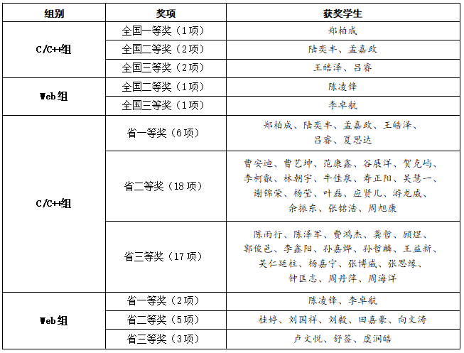 6月1日,第十五届蓝桥杯全国软件和信息技术专业人才总决赛(简称蓝桥杯大赛)在全国各赛点举行。我校8位选手(机电学院7位、医学院1位)在浙大城市学院赛点参赛,最终获全国总决赛一等奖1项、二等奖3项、三等奖3项。前期,第十五届蓝桥杯全国软件和信息技术专业人才大赛浙江省赛在全省各赛点举办。我校共有70人参赛,获省一等奖8项(获得晋级全国总决赛的资格)、二等奖23项、三等奖20项。详细获奖名单如下: