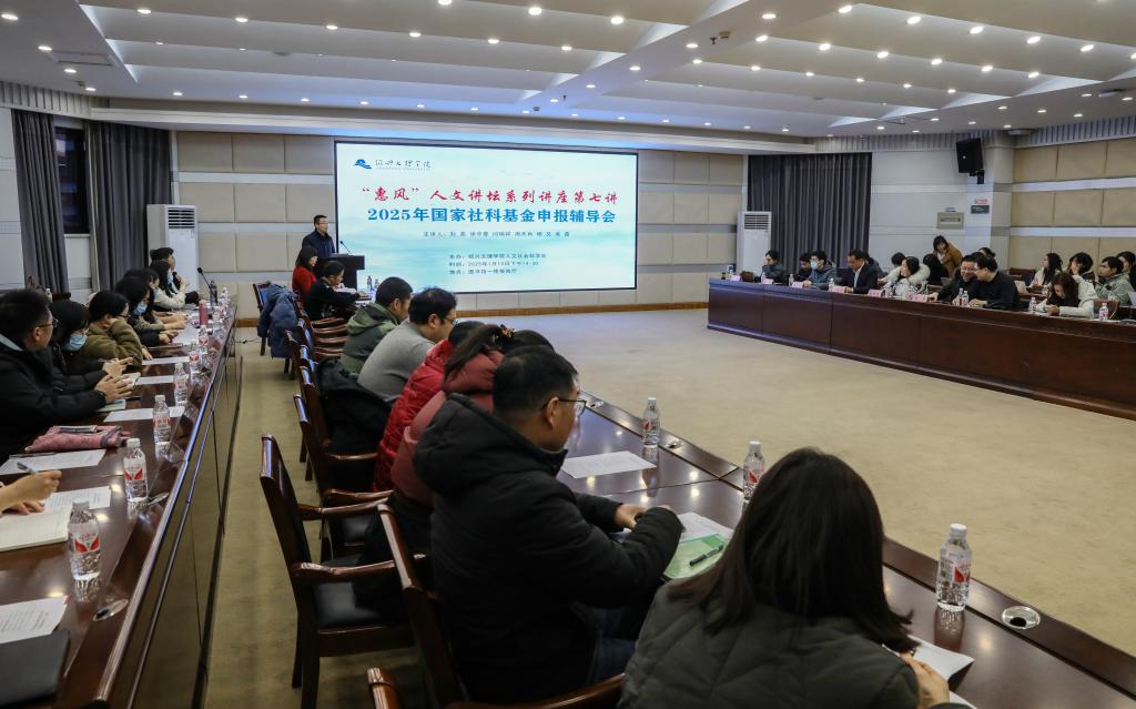 胡云进通报了我校2024年国家社科基金项目立项情况。他指出,“惠风”人文讲坛聚焦人文社会科学研究过程中的重要领域和关键环节,为学校社科研究人员提供学习交流、提升科研能力的平台。我校高度重视国家社科项目的遴选与培育,精心组织开展系列辅导活动,希望通过大家的共同努力,实现2025年立项再创新高。