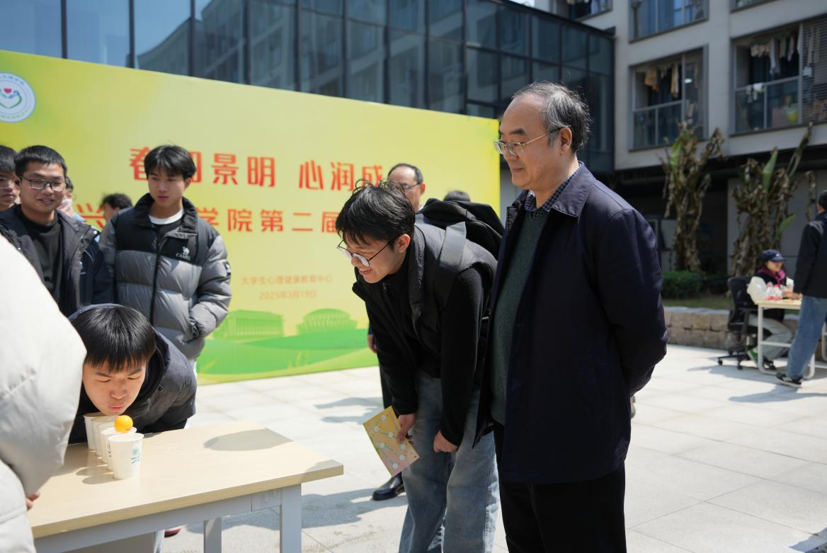 碧空如洗,微风不燥。在春风送暖中,校学工部心理中心在河东青藤书院举办第二届“春和景明,心润成长”心理游园会,全校1000余名同学参加了此次活动。同学们在欢笑与挑战中,探寻内心深处的宝藏。校党委副书记黄坚参加了此次活动,并与同学们深入交流。