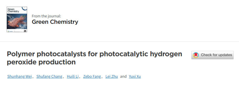 近日,我校微机电系统浙江省工程研究中心团队成员位顺航博士在化学领域Top期刊《Green Chemistry》发表题为“Polymer photocatalysts for photocatalytic hydrogen peroxide production”的综述文章(文章链接https://doi.org/10.1039/D4GC01321B