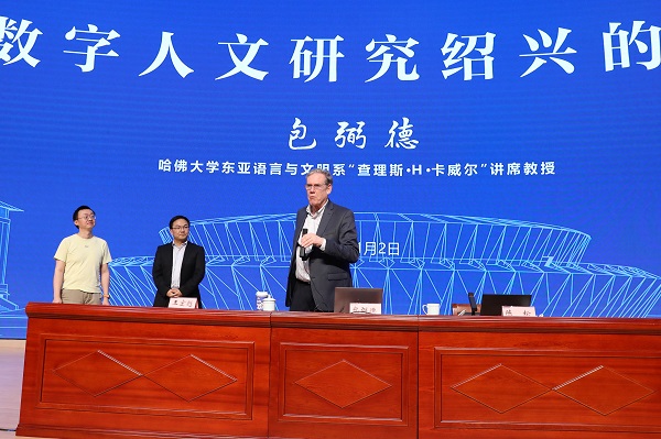 11月2日下午,风则江大讲堂第347讲“用数字人文研究绍兴的历史”专题讲座在风则江大讲堂报告厅举行,哈佛大学东亚语言与文明系“查理斯·H·卡威尔”讲席教授包弼德教授作报告,历史人文领域学者陈松、王宏甦辅助演示。校党委委员、党委宣传部部长梁瑜及全校400多名师生代表聆听讲座。讲座由人文学院院长李圣华主持。