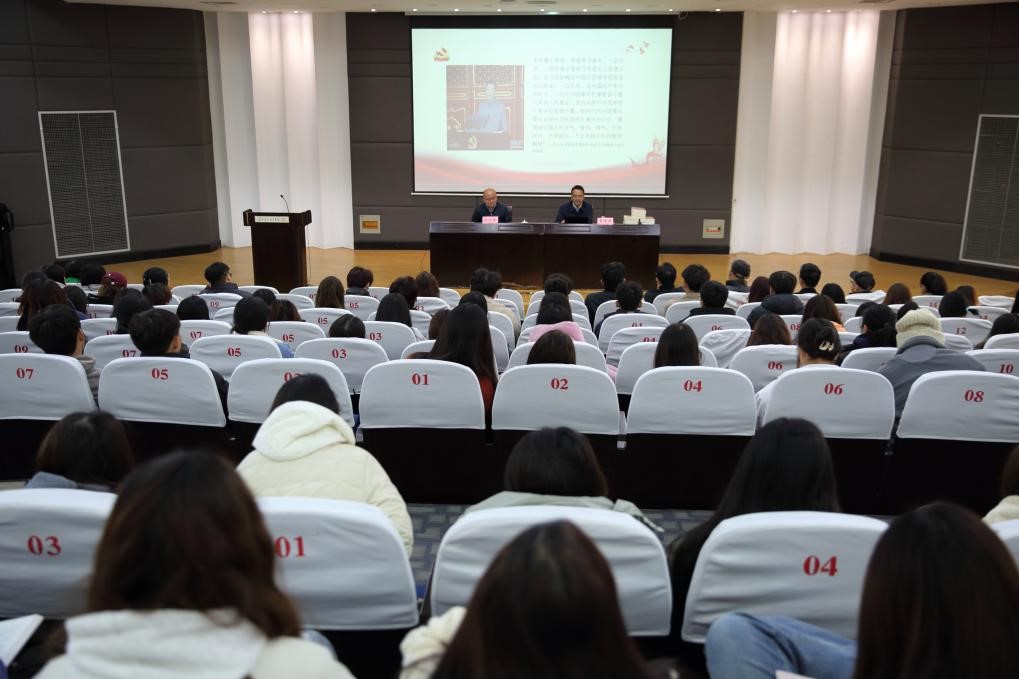 11月22日上午,兰亭书法艺术学院党委召开党委理论学习中心组扩大会议,邀请绍兴市委党史研究室主任朱全红作《从绍兴百年党史中汲取智慧和力量》专题报告。学院党委书记孙仕龙主持会议。