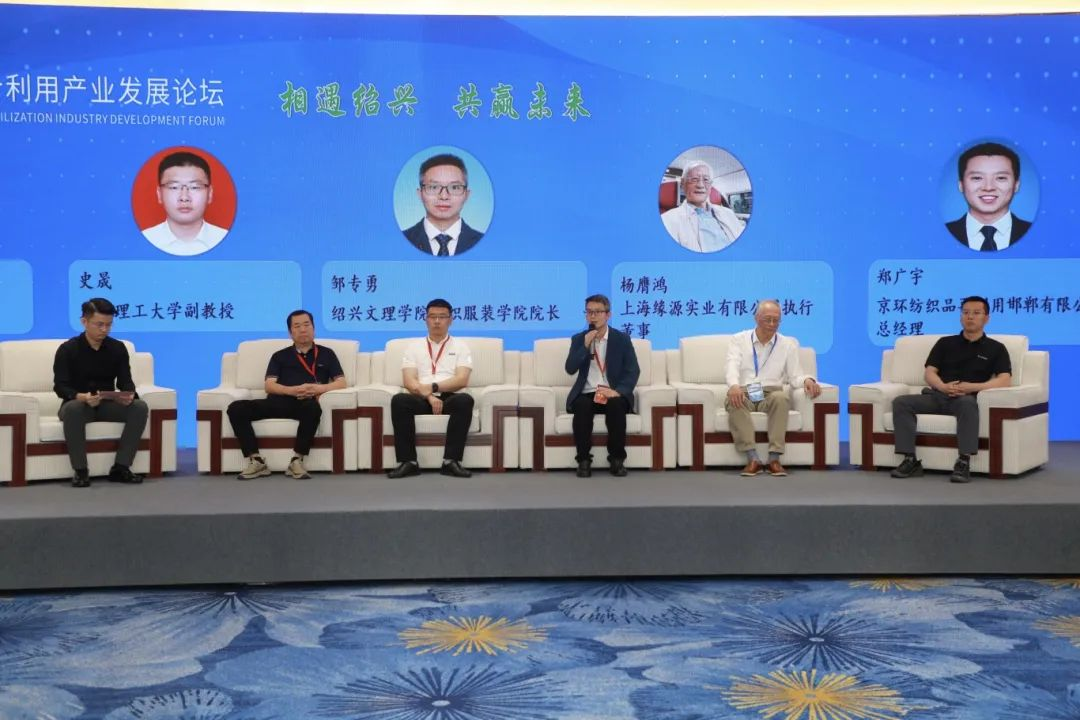 我校纺织服装学院院长邹专勇参加了主题对话环节,就废旧纺织品循环利用体系及基地建设、纺织品以旧换新及二手纺织品流通交易、废旧纺织品再生制品的认证体系及推广应用等方面做了深入交流与探讨。