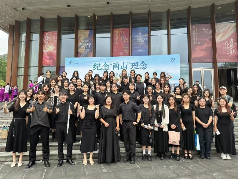9月20日在浙江音乐学院由浙江省合唱协会主办的“绿水青山就是金山银山理念20周年合唱比赛”圆满落幕。由许芳老师担任指挥、林萤岑老师担任钢琴伴奏的蔡元培艺术与设计学院混声合唱团,凭借对参赛歌曲《最爱你清清的浙江》和《梦游天姥》的出色演绎与深刻诠释,在众多优秀队伍中脱颖而出,荣获大赛金奖。其中,参赛曲目之一的《梦游天姥》由蔡元培艺术与设计学院张开老师作曲,其作品为比赛增添了独特的艺术光彩。